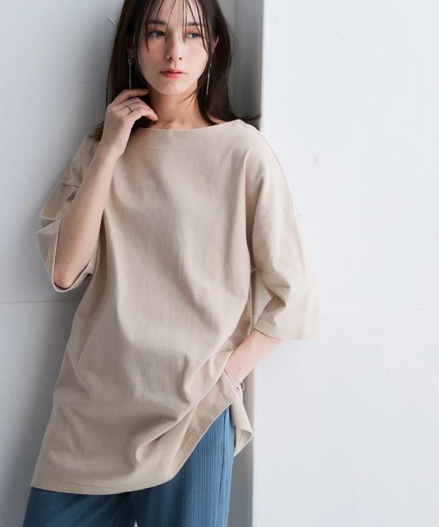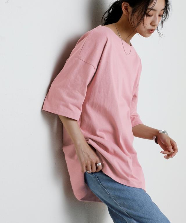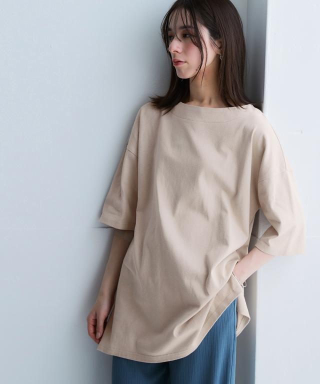 綿100%バスクオーバーサイズ5分袖チュニック(UVカット)