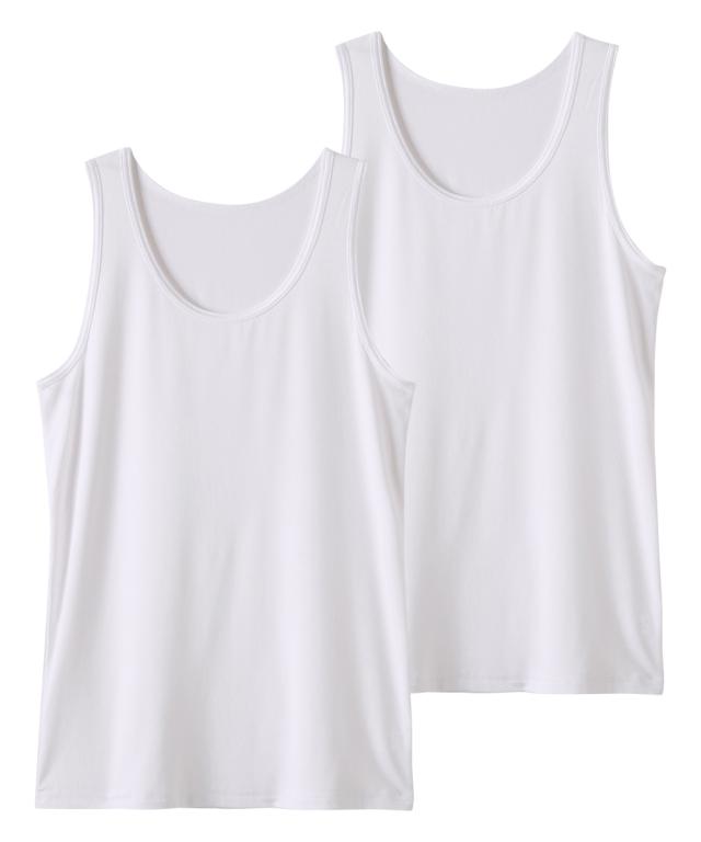 さらっとした着ごこちと着用した時のひんやり感が気持ちいいタンクトップ☆ <特徴> ひんやりとした着ごこちです。暑い日を涼しく過ごしたいお子様におすすめです。 ・吸汗速乾・ 汗をかいても乾きが早いので、ベタつきにくいです。・なめらかストレッチ素材・ 着ごこちがよく快適です ・洗い替えに便利なセット組・ 毎日着用して欲しいから、セット組でお届けします。・無地・ シンプルなデザインで男女問わずお使いいただけます。 白は制服や体操服の下にもおすすめです。同素材の 吸汗速乾なめらかストレッチ1分丈オーバーパンツ2枚組 も販売しております。