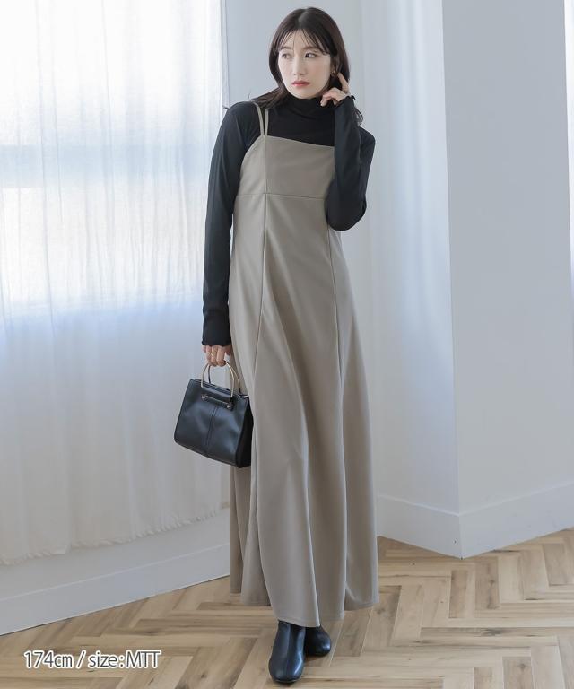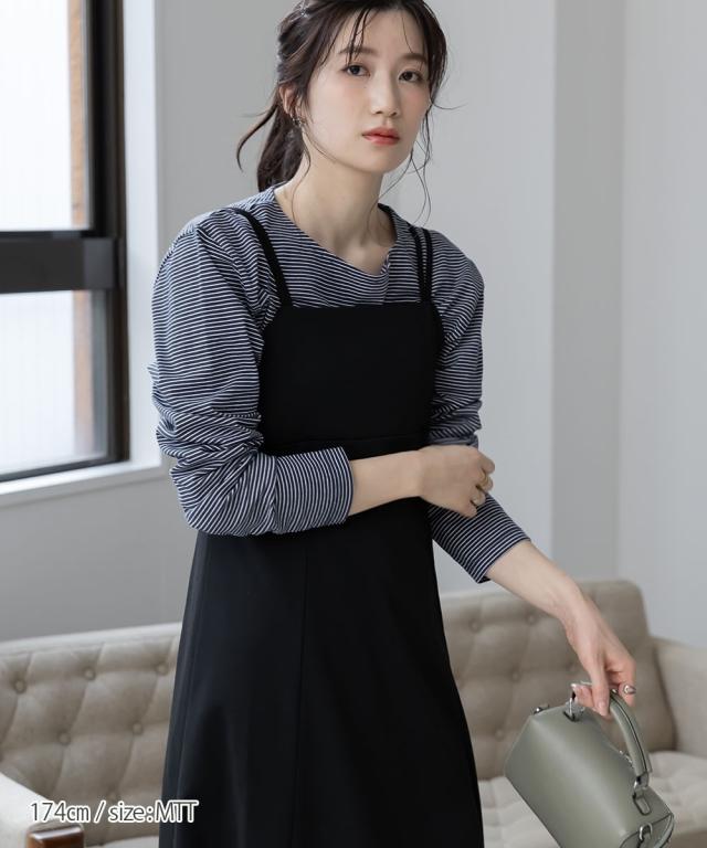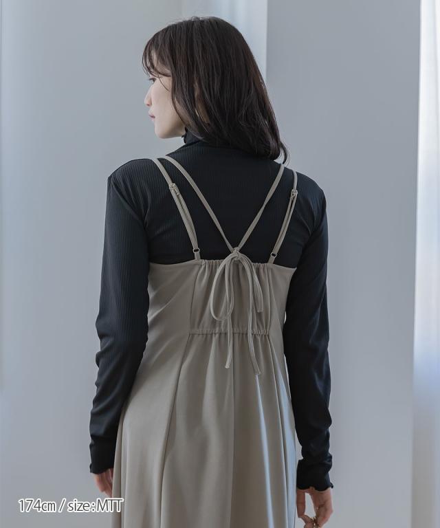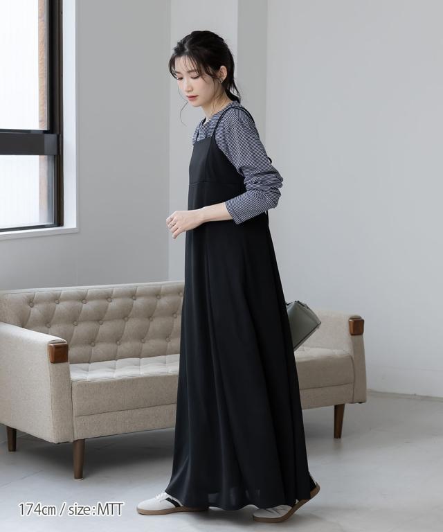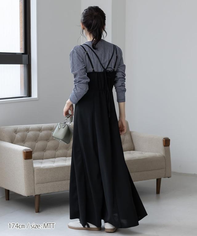 【高身長な方向け】きれい見えカットソー素材で着心地らくちんキャミワンピース ■デザイン ・バスト部分切替デザイン。すっきりと綺麗にみせてくれます。 背中部分にゴムを入れているので窮屈感なくご着用いただけます。・ボリューム感あるフレアシルエット。・後ろリボンデザイン。肩ひもとリンクしておりアジャスターの長さに応じてリボンの大きさを調整ください。・肩ひも部分はアジャスター付きで調節が可能です。 ■素材 ・カットジョーゼット素材を使用。布帛見えする綺麗め素材です。・伸縮性もあるので着心地らくちんです。 ■おすすめのスタイリング 1枚あれば便利なキャミワンピース。夏場はTシャツをはじめ、タンクトップとレイヤードしても涼し気で可愛い スニーカー、サンダル問わず様々な靴と相性ばっちり。気分に応じてカジュアル、きれいめ問わず楽しめちゃいます。