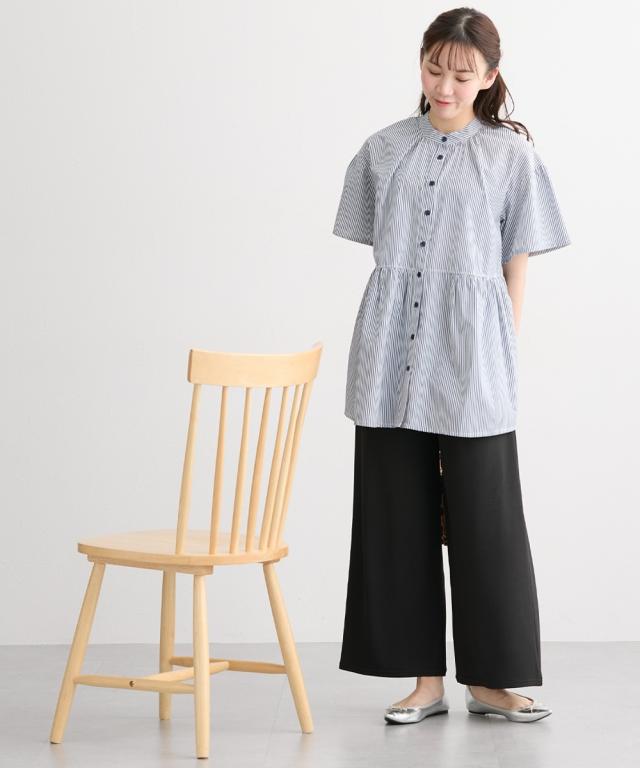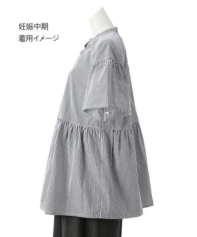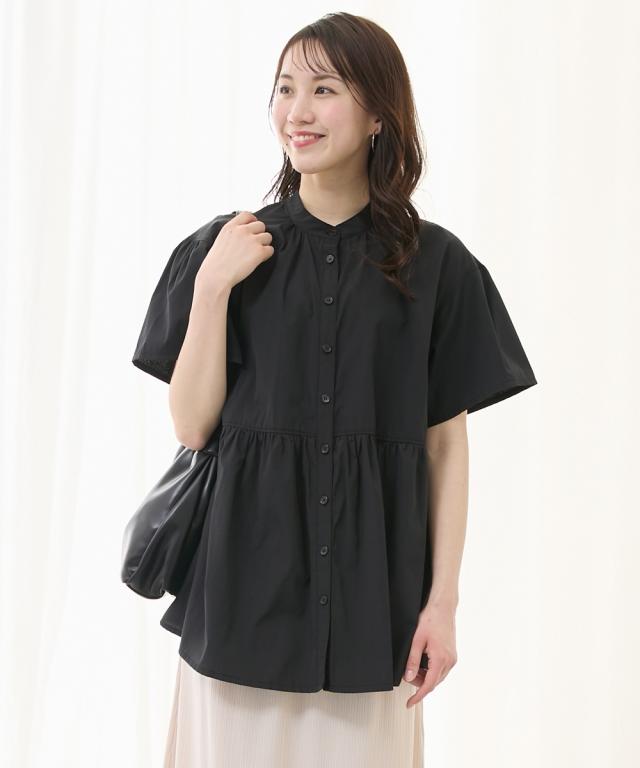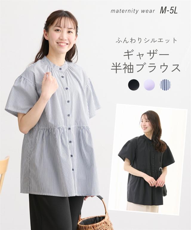 【マタニティウェア・授乳服】前開きギャザー半袖ブラウス(産前・産後)