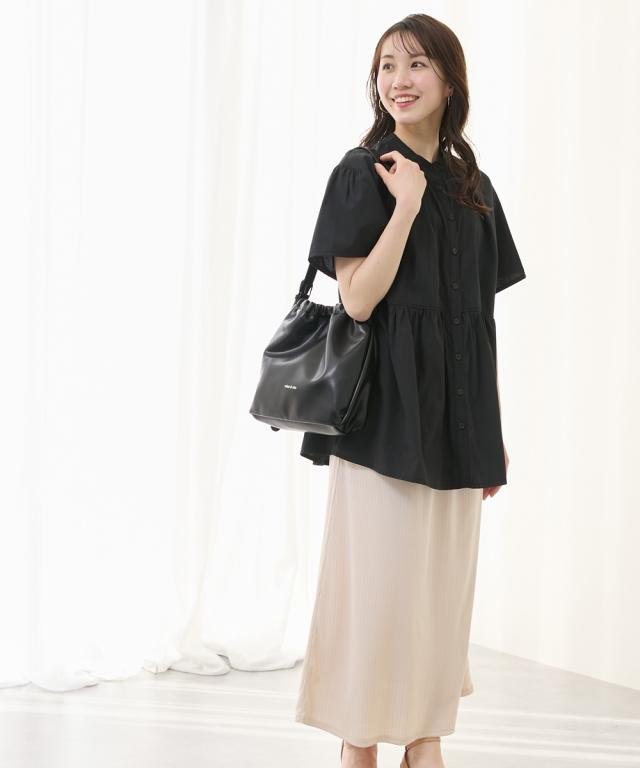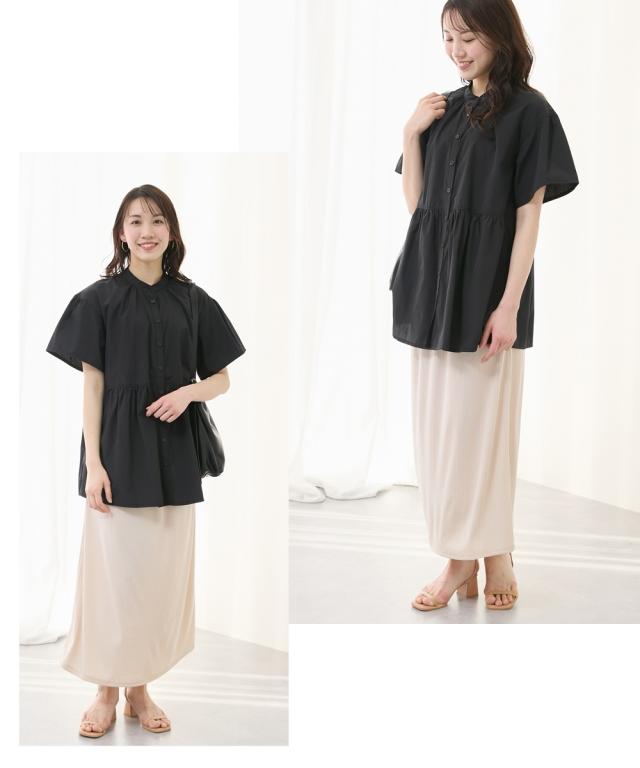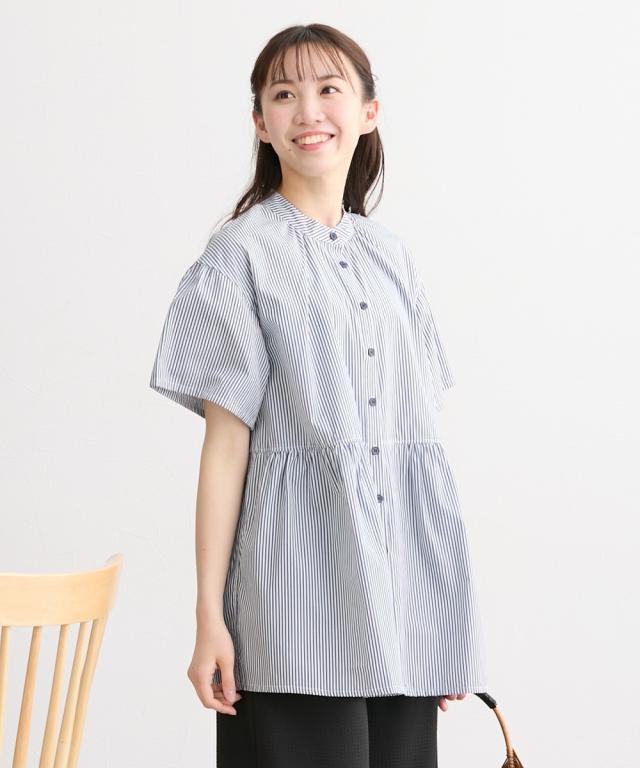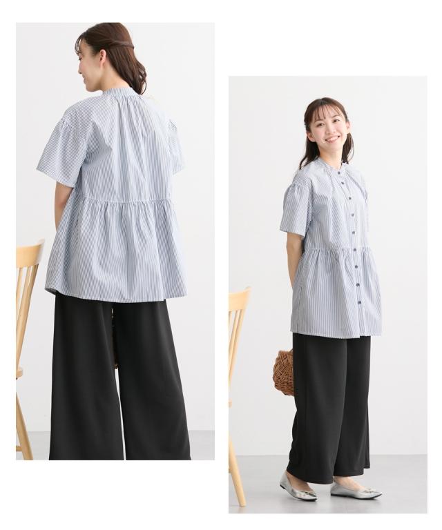 【マタニティウェア・授乳服】前開きギャザー半袖ブラウス(産前・産後)