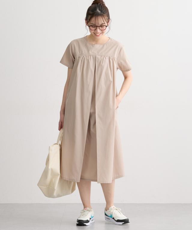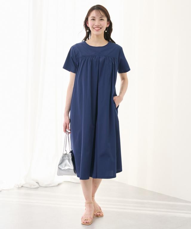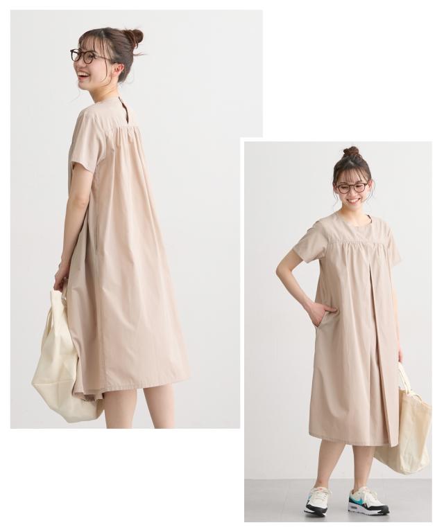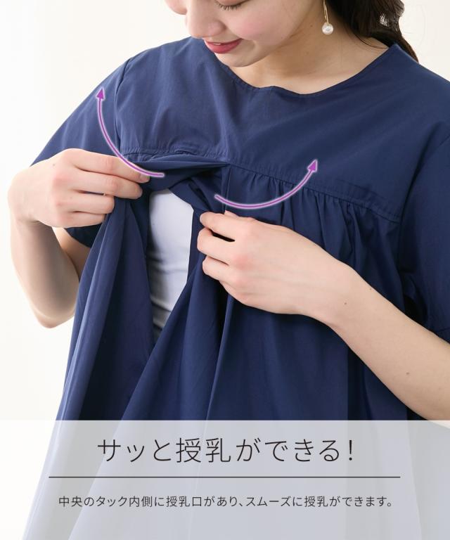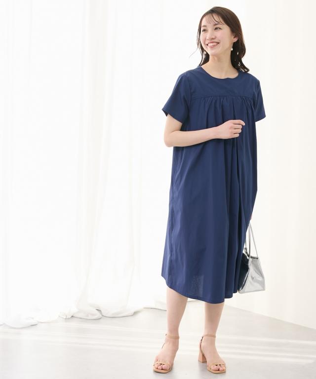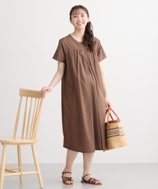 さらっとした着心地の半袖ギャザーワンピースです。 ■design ・妊娠中も体型をカバーする、ゆったりしたシルエット ・上品なギャザーデザインがカジュアルながらも女性らしい印象を与えてくれます。 ■point ・中央のタックの内側に縦スリットの授乳口があり、ずらすだけでサッと授乳ができます。 授乳口が見えないデザインなので、産後も長く着ていただけます。 ・両脇にポケットがあり、スマホやハンカチなどを入れられて便利です。 ■fabric ・綿混の織物生地でさらっと軽い着心地