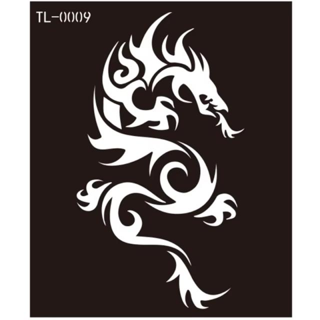 ファイヤードラゴン ステンシルシートステッカー 1個販売 手 足 ハンド 顔 フェイス フット 背中 肩 腕 腹 ヘナタトゥー シール 貼る シール ボディーペイント 入れ墨 入墨 刺青 トライバル 型紙 フェイクタトゥー メンズ レディース 男性 女性 シール 簡単 セルフ 自分で