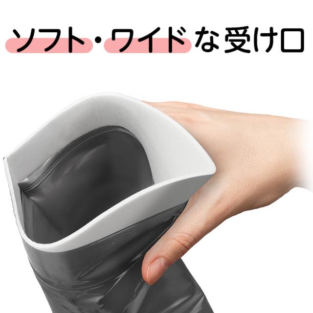 ■ソフト&ワイドな受け口で、開いて排尿するだけで水なしですぐに固まります。