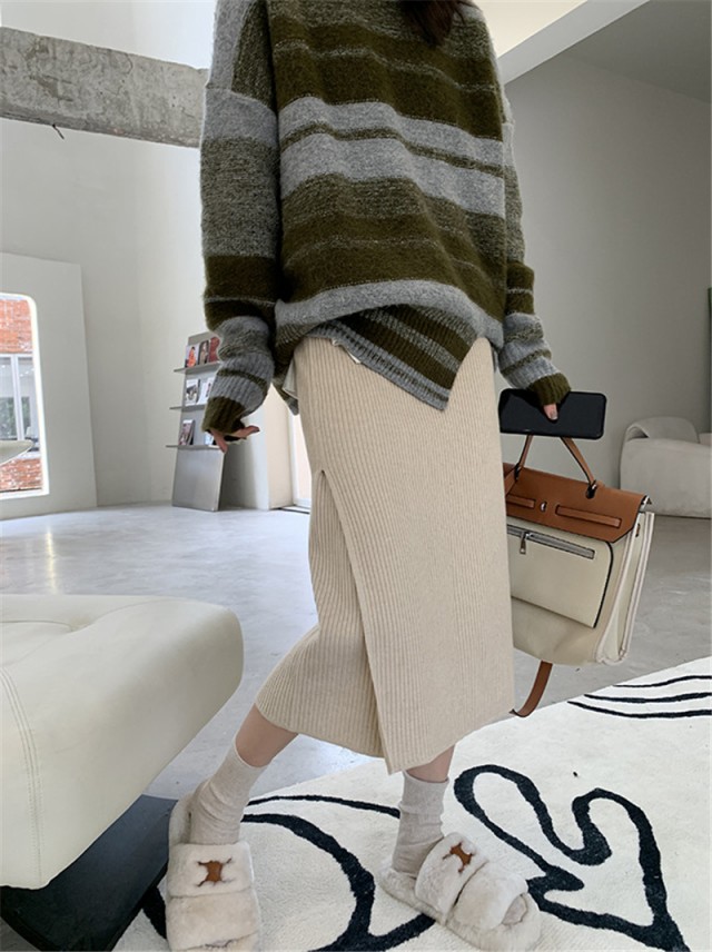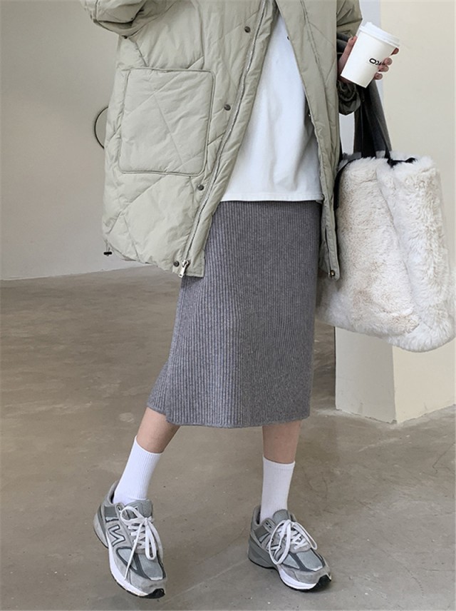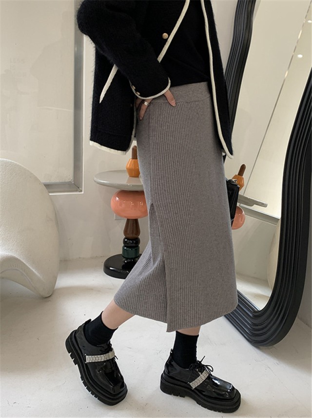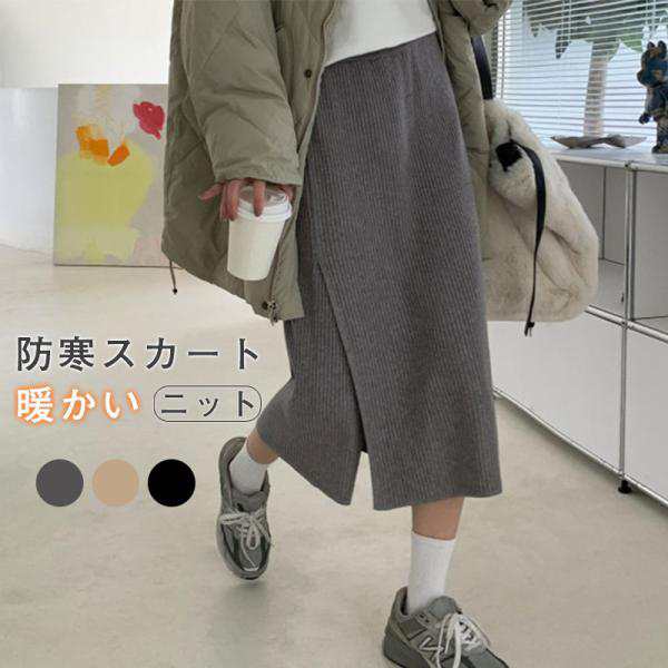 【ポイント5倍!】ニットスカート スリットスカート スリット入り タイト レディース ボトムス あたたかい ストレッチ ミモレ丈 ロング ストレート Aライン