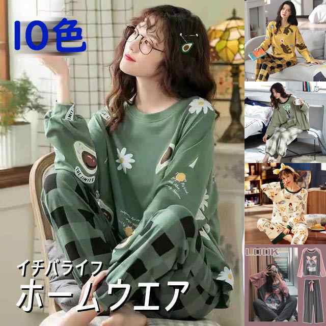 【ポイント5倍!】ルームウェア Tシャツ ズボン 2点セット セットアップ 長袖 レディース シンプル パジャマ 春秋 秋冬 可愛い 部屋着 寝巻き