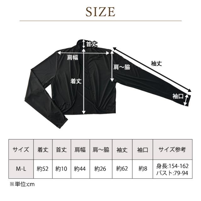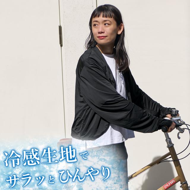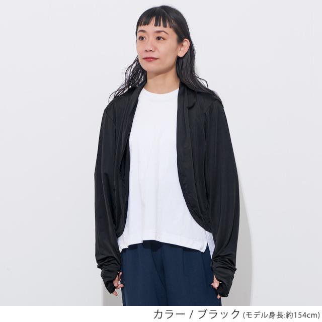レディース 春 夏 春夏 春用 夏用 黒 ブラック UVカット アームボレロ カーディガン アームカバー 腕カバー ロング 長袖 指穴付き 羽織り 首 肩 腕 日除け 日焼け防止 自転車 車 運転 接触冷感 | UV&クール サラッとふんわり ボレロ (指だし穴付き) ko-sfb