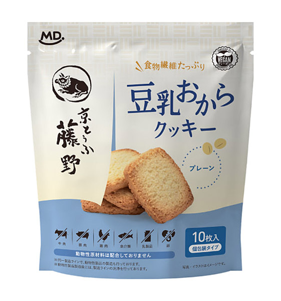動物性原材料を使用せずにつくった、やさしい味わいの豆乳とおからの風味が特徴のクッキーです。