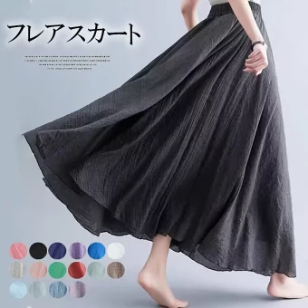 ふわっと広がる裾 全18色 カラバリ豊富 リネン スカート フレアスカート 綿麻風 マキシスカート ロングスカート aライン ナチュラル 体型カバー ゴムウエスト
