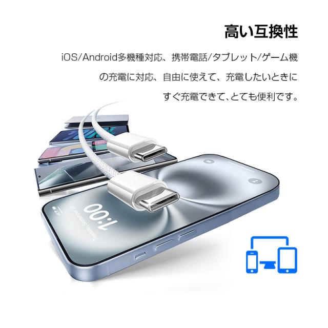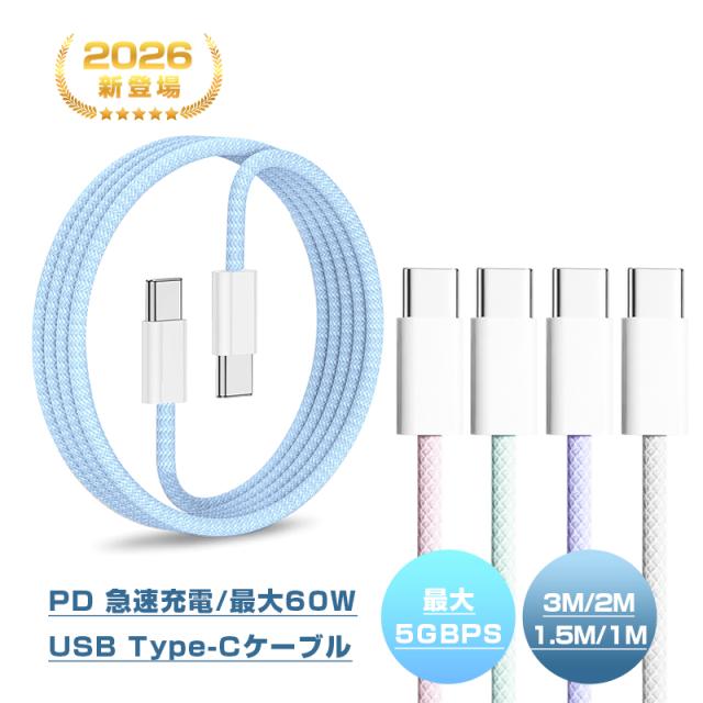 【2025最新】Type-C to Type-Cケーブル 長さ1m/1.5m/2m/3m 高速データ転送 USB3.0 ナイロン編み ナイロンメッシュ データ同期 携帯充電コード スマホ/イヤホン/ノートパソコン/タブレット充電 超多用途 iPad 充電ケーブル 通勤 収納便利 旅行 【PL保険加入済み製品・安心】