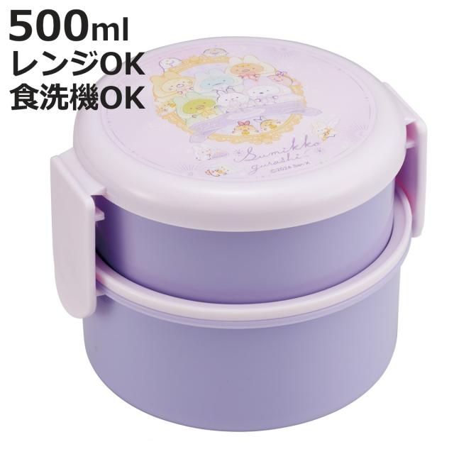 弁当箱 2段 500ml 抗菌丸型ランチBOX2段 すみっコぐらし おまじない ( 食洗機対応 抗菌 丸型 ランチボックス レンジ対応 二段 日本製 レンジOK 食洗機OK お弁当 弁当 フォーク付き 銀 AG 抗菌加工 )