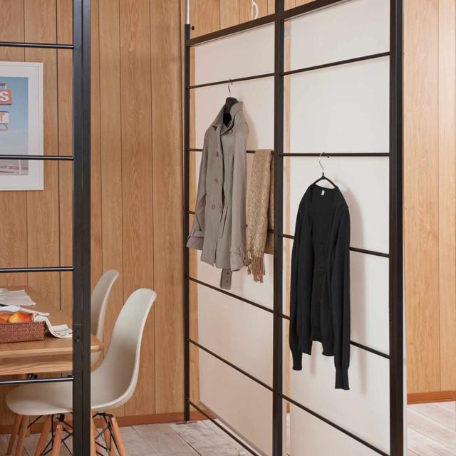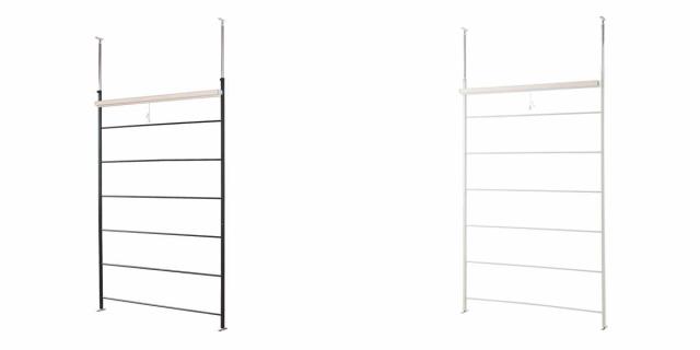 ラダー状のパーテーションなので、光がラダーの隙間から差し込み、圧迫感なく、明るく間仕切ることができます。ちょっとした小物などを掛けることもできるので便利です。