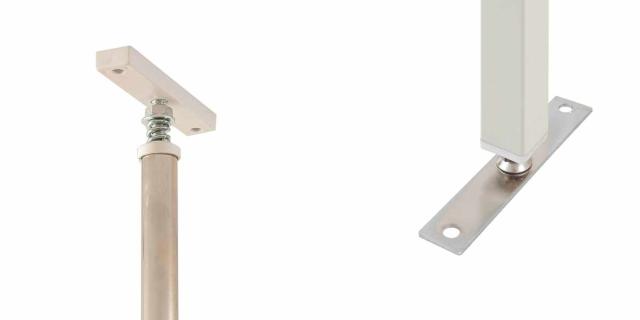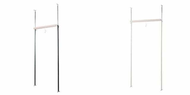 突っ張り棒で天井と床を突っ張ることで簡単に固定ができます。天井の高さに合わせて無段階で調整可能です。ビス穴もあるので、位置が決まればビス止め固定することもできます。
