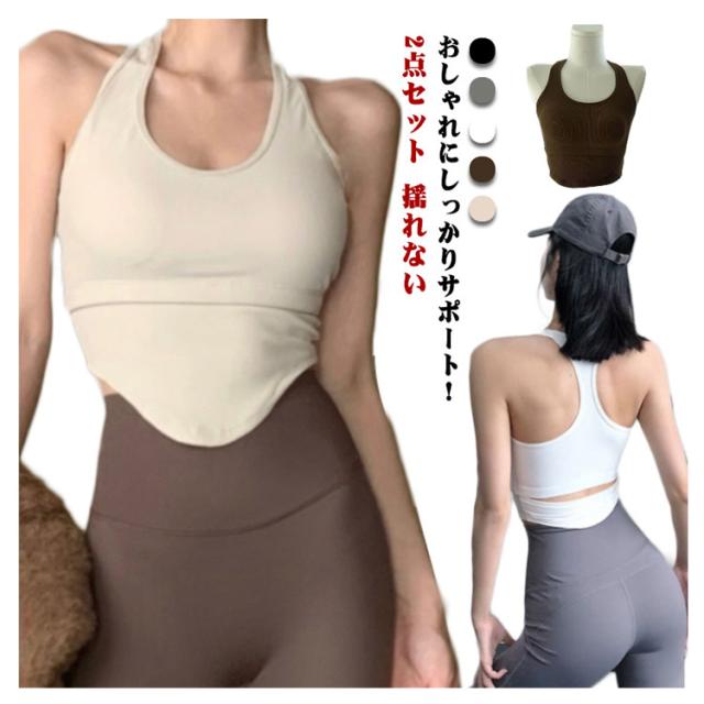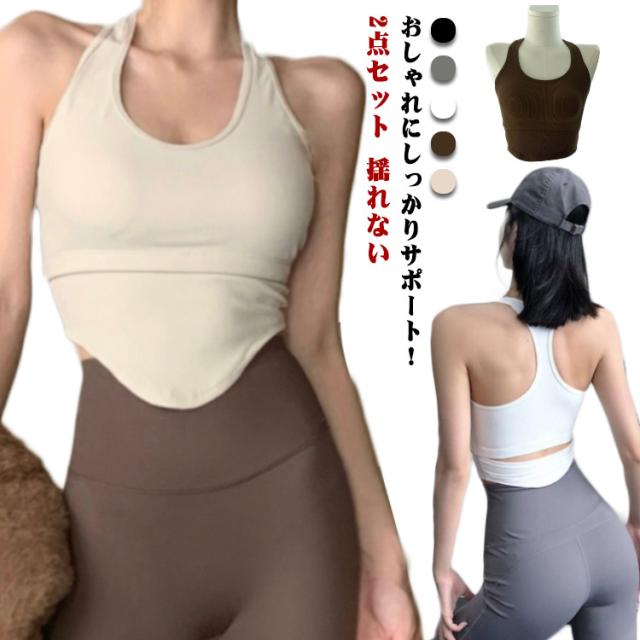 2点セット スポーツブラ 揺れない おしゃれ ヨガ ピラティス ウェア カップ付 スポブラ ヨガブラ キャミソール タンクトップ レディース スポーツウェア ランニングウエア フィットネスウェア ジムウェア インナー フィットネス Yバック 美胸 バストアップ 送料無料