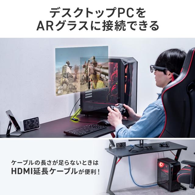 ●USB-Cポートを持たないデスクトップPCのグラフィックボードから、本製品を繋ぐことでUSB-C接続のARグラスで使用することができます。