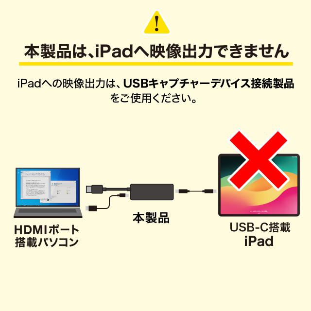 ※本製品はUSBキャプチャーデバイスではございませんので、iPadへの映像出力には対応しておりません。