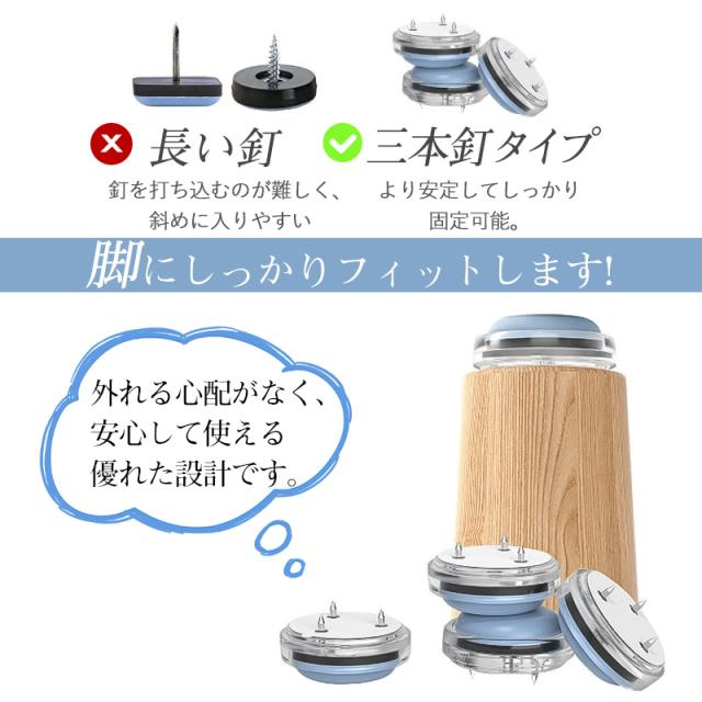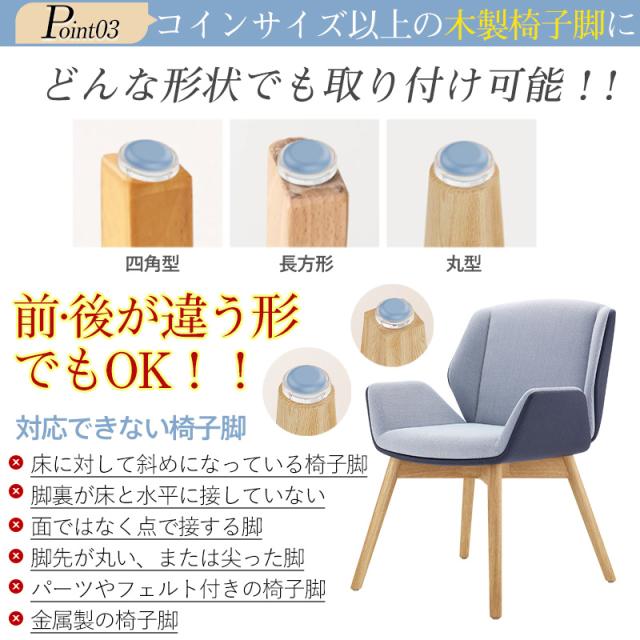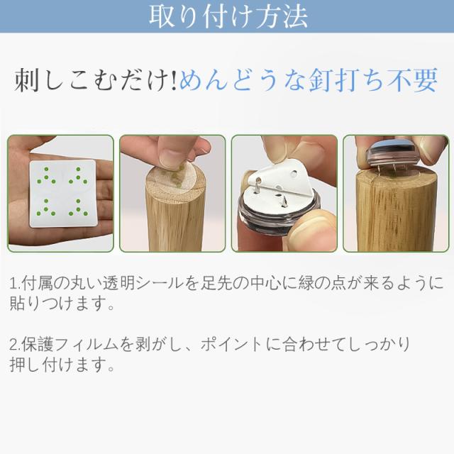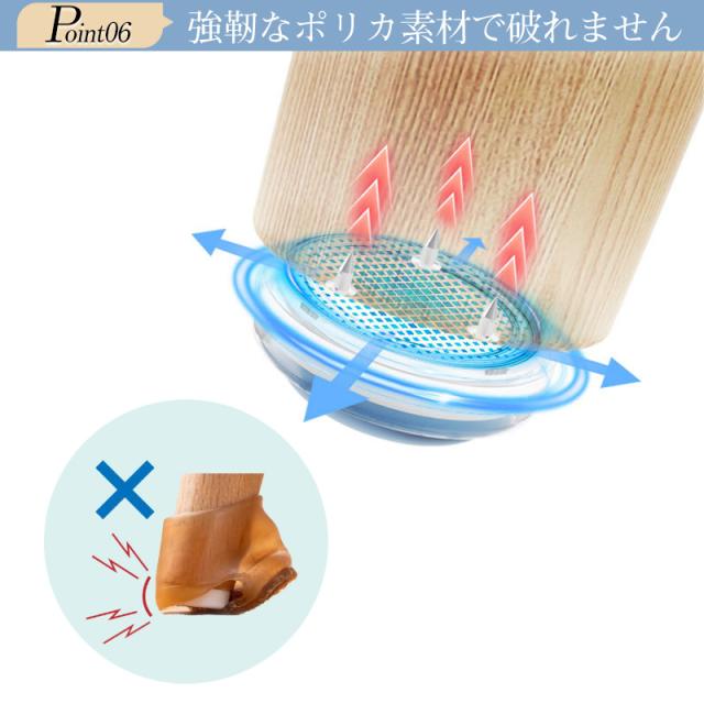 ◇丸脚、角脚、どんな木製脚にもぴったりフィットするマルチサイズ設計。