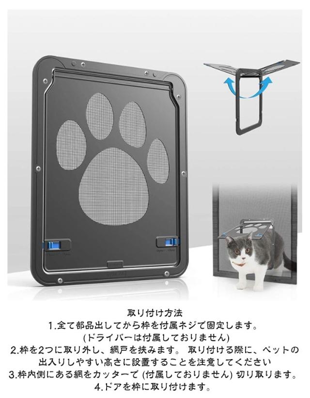 取り付け簡単 小型犬 キャットドア ペットドア 網戸用ペットの出入り口 ペット 取付簡単 ロック付き 犬 ペット出入り口 マグネット式 猫 自由に出入 ペットドア 開閉自由 足跡型 可愛い 犬用 猫用 ドア 網戸 用 出口 入り口
