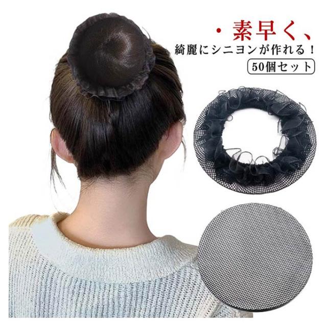 女性 50個セット シニヨンネット 髪束ねネット 紐付き お団子ネット まとめ髪 髪留め ヘアネット おだんご お団子ヘア キッズ レディース バレエ 子供 ヘアアクセサリー レース ダンス ヘアネット CA 就活 職場