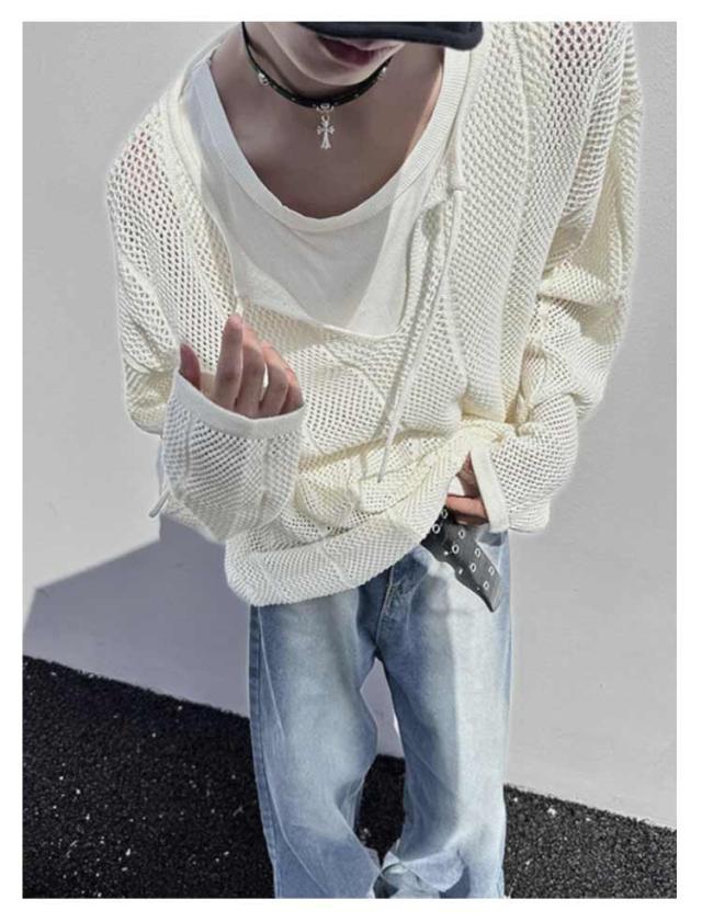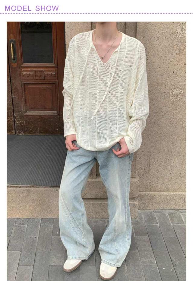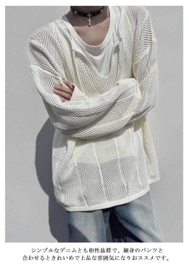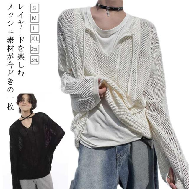 長袖Tシャツ メンズ ゆったり クルーネックニット レース編み メッシュ レディース ビッグサイズ ニット 透かし編み オーバーサイズ レイヤード 重ね着 きれいめ カジュアル シンプル 個性 ヒップホップ 韓国ファッション ストリート 送料無料