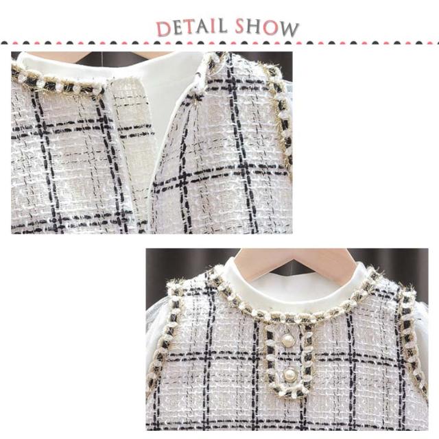 | 【2点セット】エレガントでスタイリッシュなデザイン。 クラシックなツイード風のデザインが施されたワンピース。 入園式、お誕生日パーティー、結婚式、七五三など、さまざまなフォーマルな場面でのご使用に最適です。 また、普段のお出かけにもおしゃれを楽しむことができるため、多用途に活躍するアイテムです。 | |