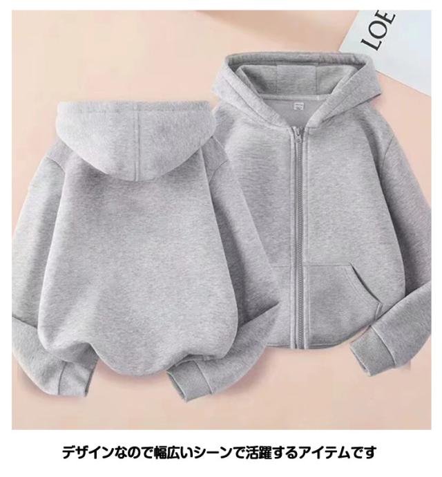 長袖 カジュアル シンプル ジップパーカー 100-160cm キッズ ジュニア 着まわし 女の子 無地 リブ袖 男の子 ポケット付き パーカー リンクコーデ 羽織り カラバリ豊富 フーディー ジップアップ 春服 秋服