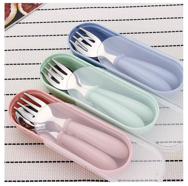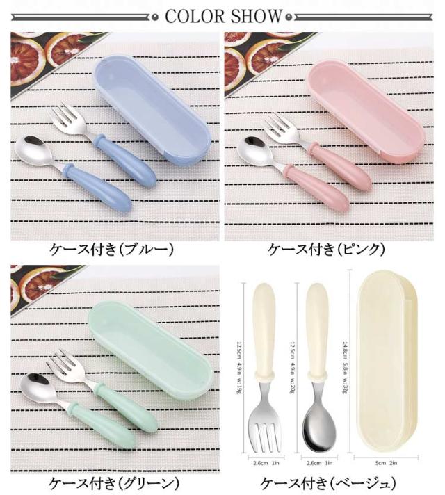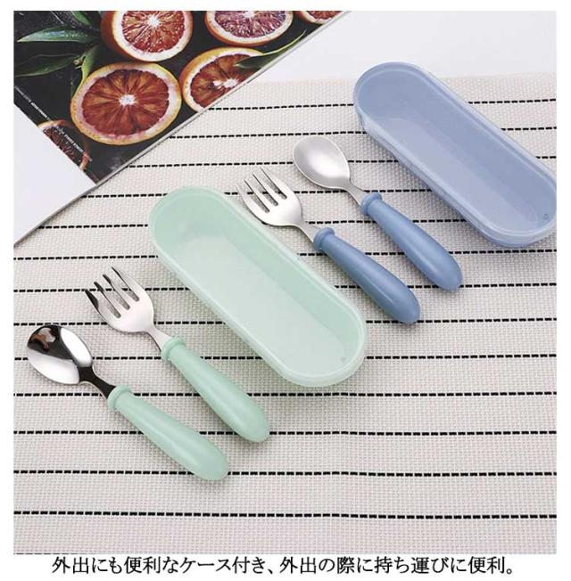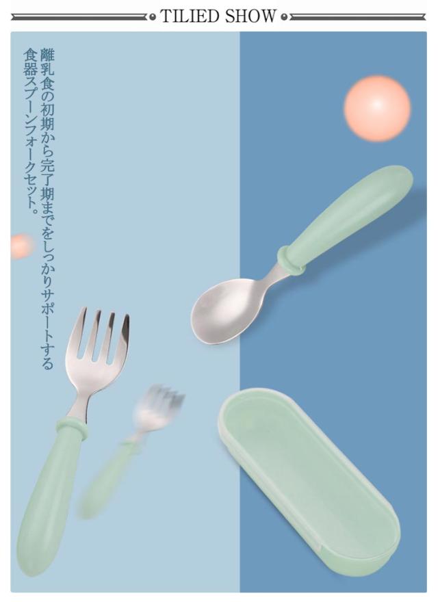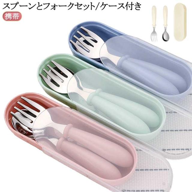 | スプーンとフォークセット/ケース付き 離乳食の初期から完了期までをしっかりサポートする食器スプーンフォークセット 外出にも便利なケース付き、外出の際に持ち運びに便利 | |