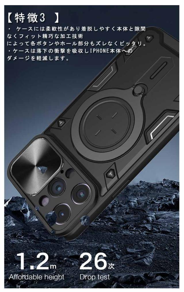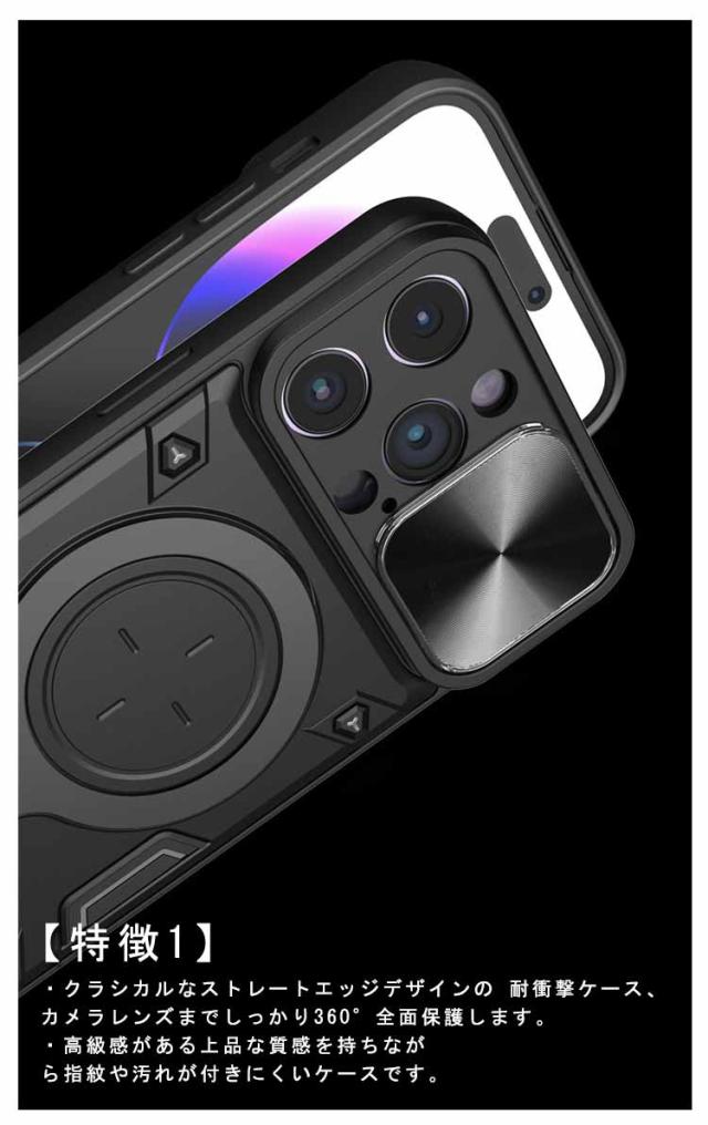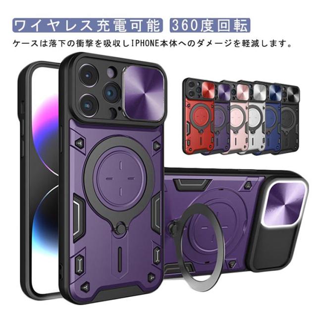 iPhone16 ケース 耐衝撃 カバー スライド式カメラレンズカバー付 レンズ保護 iPhone15 ケース スタンド機能 一体型リング付き 360度回転 リング 2重構造 iPhone 14 14 Pro 15 14 13 12 Pro Max 送料無料