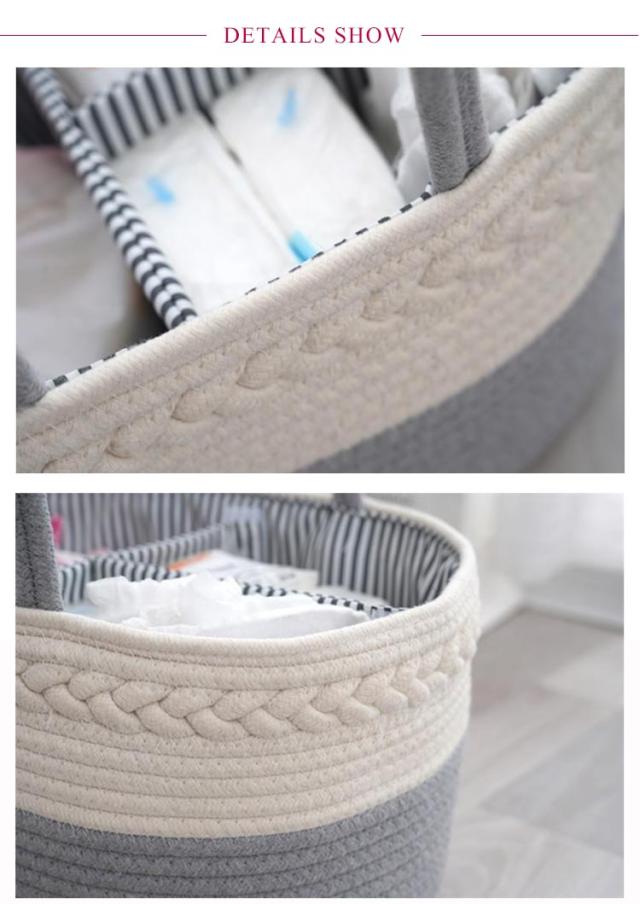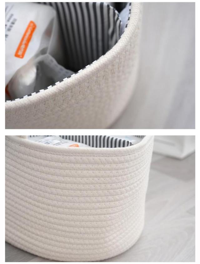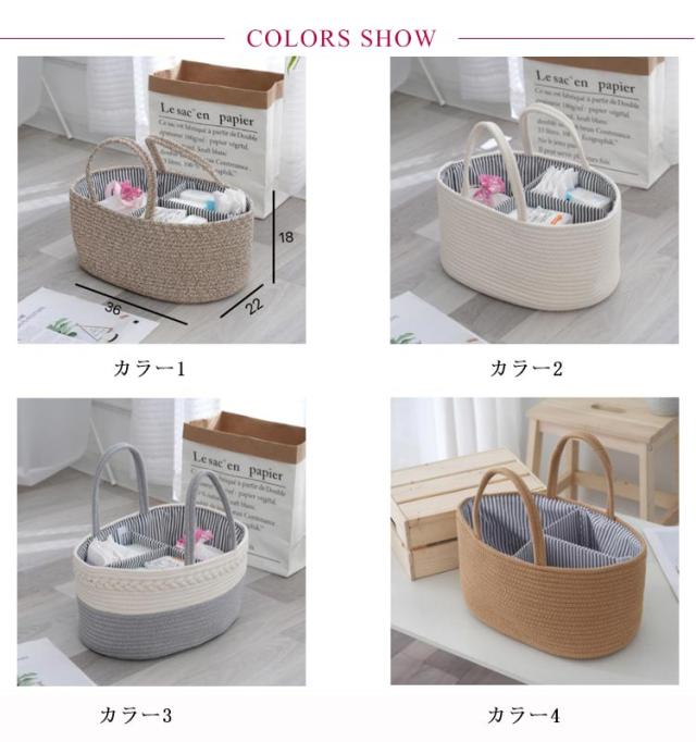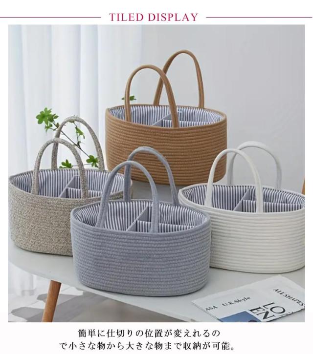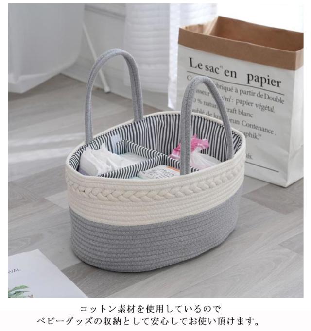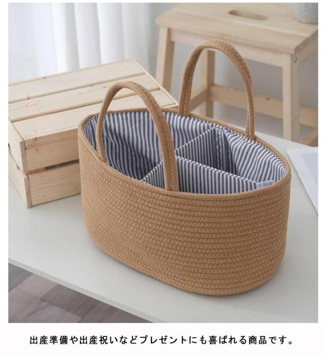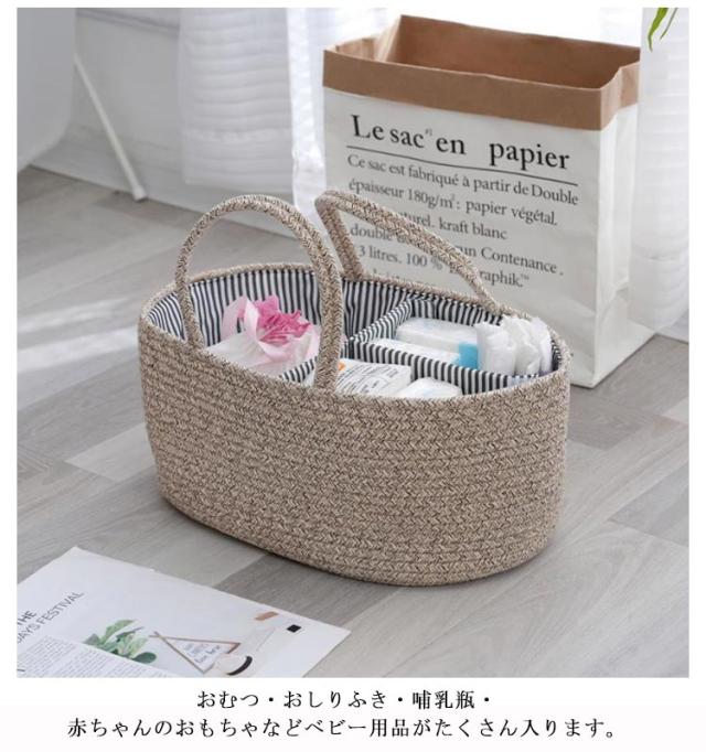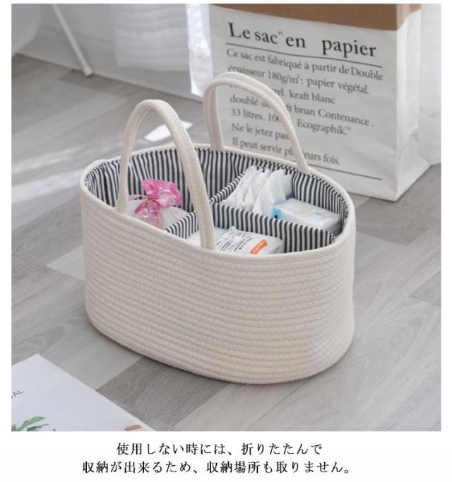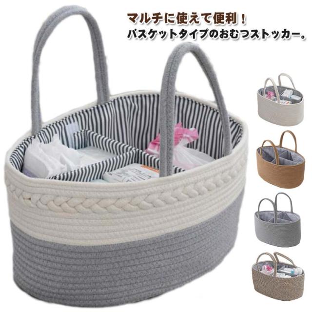 おむつストッカー おむつケース おむつバッグ おもちゃボックス コットンロープ カゴバッグ ロープ編み 仕切り 小物入れ おむつストッカー おむつ収納 バスケット 赤ちゃん 軽量 ベビー用品 持ち運び便利 出産準備 赤ちゃん