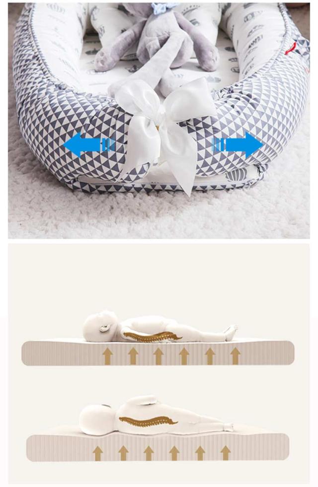 | 赤ちゃんのお昼寝時の快適性にこだわってつくったベッドインベッド。 包み込まれるような形状は、赤ちゃんにお安心した環境を与えてくれ、眠りの質を高めてくれます。 ベッドの中や布団の上にセットしたり、おむつ替えに使ったりと、多目的に利用ができます。 また防水性、通気性を兼ね備えた素材のため、お昼寝時も快適に過ごせます。 軽くて持ち運びもラクラク。お出かけ時の持ち運びにもとても便利。 赤ちゃんと一緒に大人用ベッドで添い寝してあげたい方におすすめ! | |