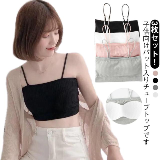 カップ付き 3枚セット チューブトップ ブラジャー 3枚セット 小学生 キャミソール ダンス衣装 女子高生 ノンワイヤー 中学生 キッズ スポーツブラ ヒップホップ ジュニア インナー 下着 女児 アンダーウェア ブラトップ キッズ 大人