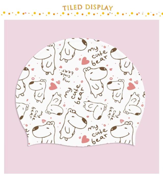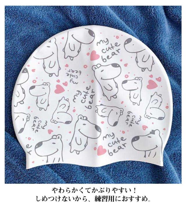 | プリントデザインがかわいいシリコン素材スイムキャップ 水の抵抗を受けにくく、プールの塩素で髪の毛が痛みづらいシリコン素材! 気になる紫外線や塩素から髪の毛を守ります。 やわらかくてかぶりやすい!しめつけないから、練習用におすすめ。 | |