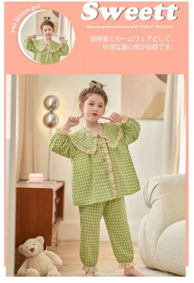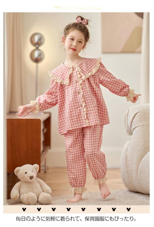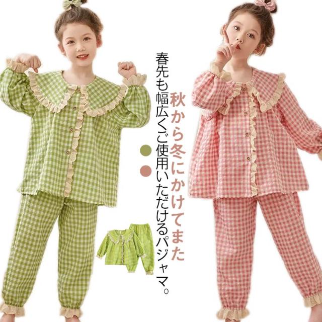 パジャマ キッズ ルームウェア 長ズボン 長袖 セットアップ 前開き 女の子 部屋着 かわいい 100 春 長袖パジャマ 寝巻 こども ベビー 子供服 秋 冬 パジャマ おしゃれ 女児 110 120 130 140 150
