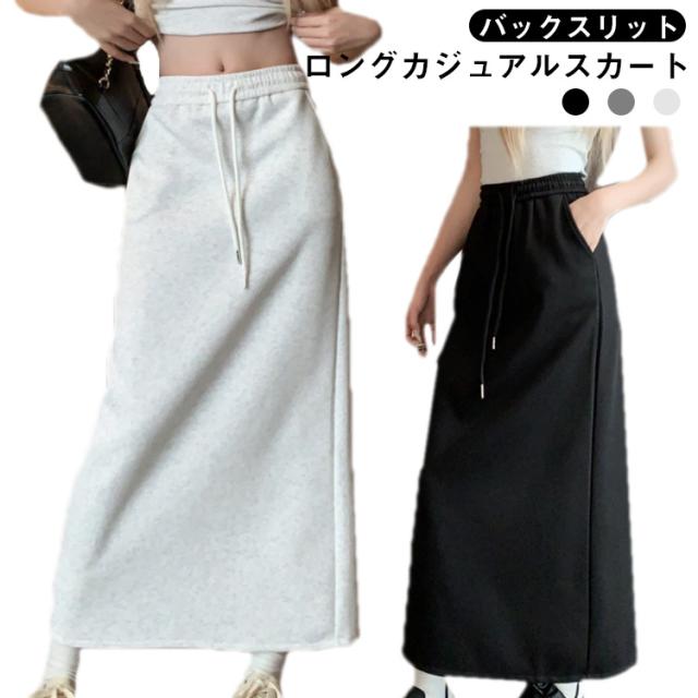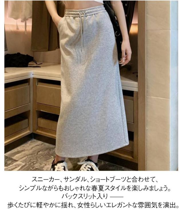 ロングスカート ゆったり ハイウエスト スリット入り ミディスカート スウェット 無地 スカート ウエストゴム シンプル ロング丈 ロングスカート おしゃれ