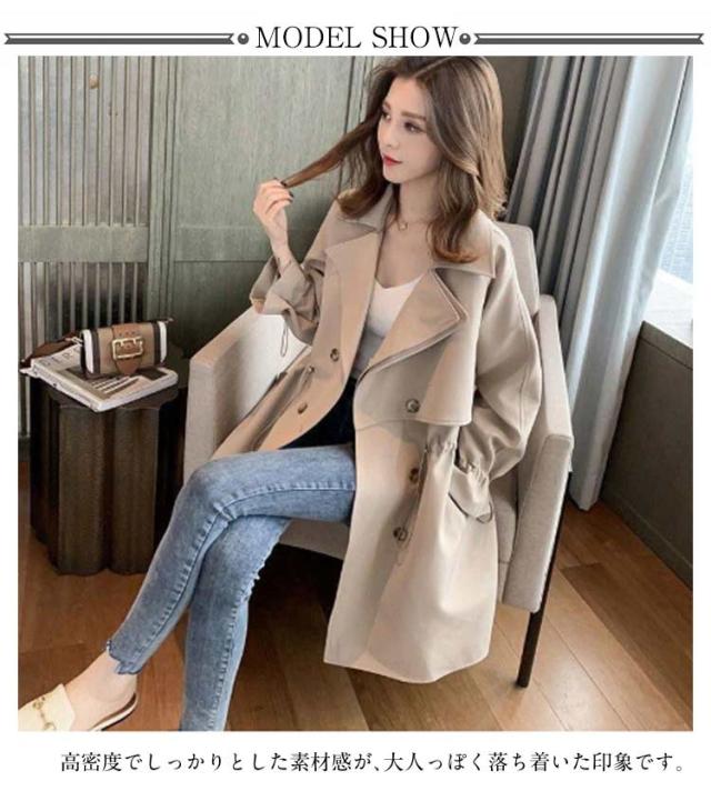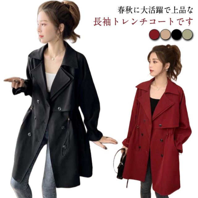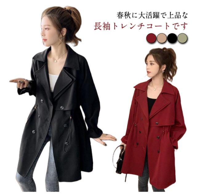 エレガント スプリングコート 大きいサイズ 春秋 ミドル丈 トレンチコート 春コート ロングコート トレンチ アウター 無地 通勤 カジュアル 高級感 ジャケット トレンチコート 卒業式 服 母 長袖 ゆったり 20代 30代