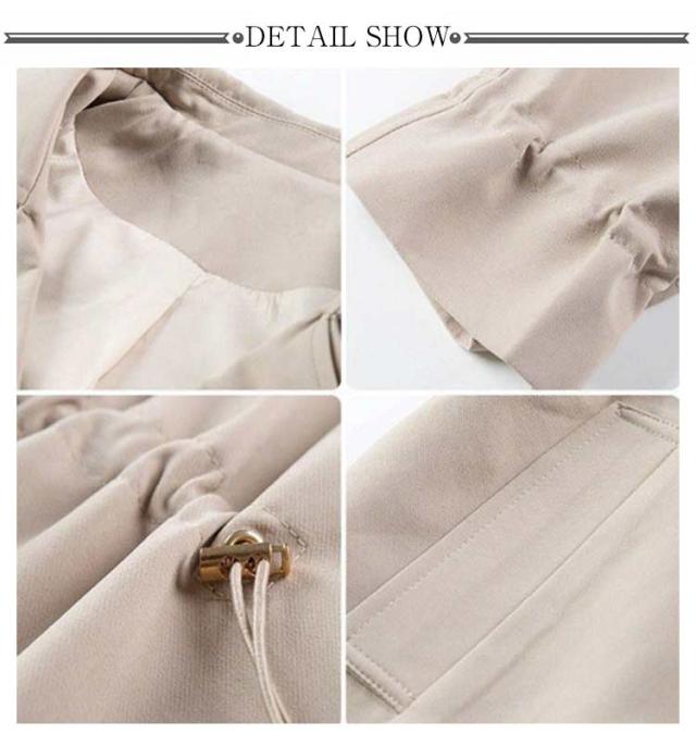 | 春秋に大活躍で上品な長袖トレンチコートです。 高密度でしっかりとした素材感が、大人っぽく落ち着いた印象です。 女性らしい襟のデザインが人気のポイント。小顔効果を演出します。 | |
