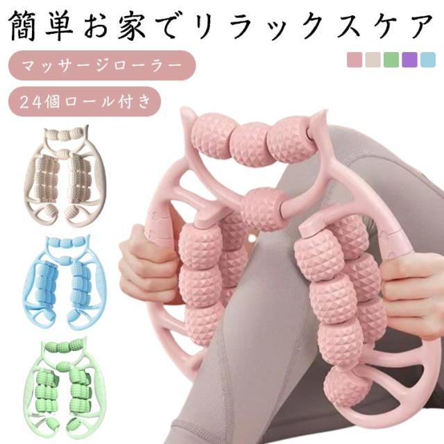 ストレッチローラー 24個ロール 太もも リングマッサージャー マッサージローラー 筋膜ローラー マッサージローラー ローラー ストレッチグッズ ふくらはぎ 筋膜リリース 脚 首 肩こり マッサージ 両手タイプ ヨガ フィットネス 全身 むくみ 軽量 室内 運動 お洒落