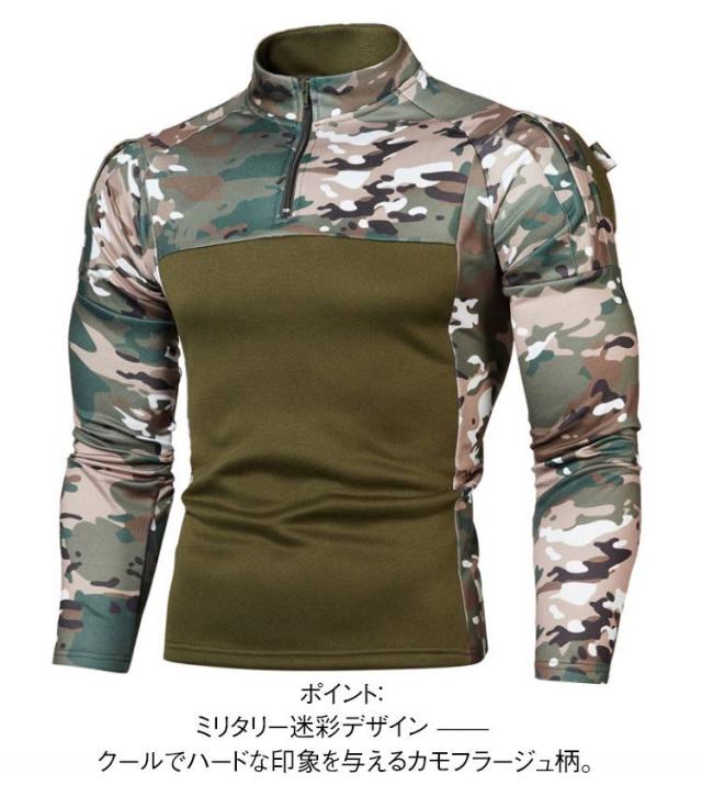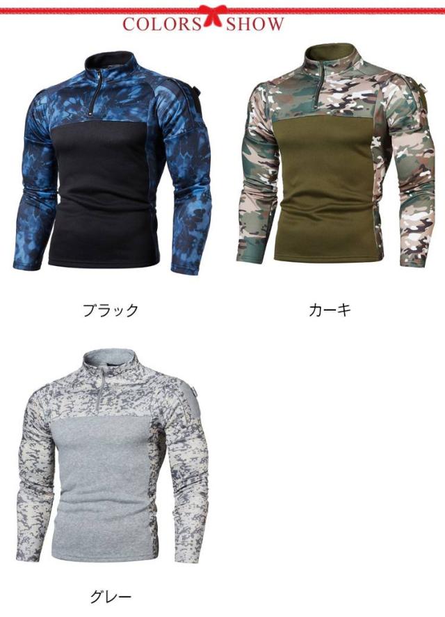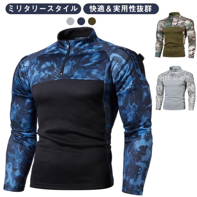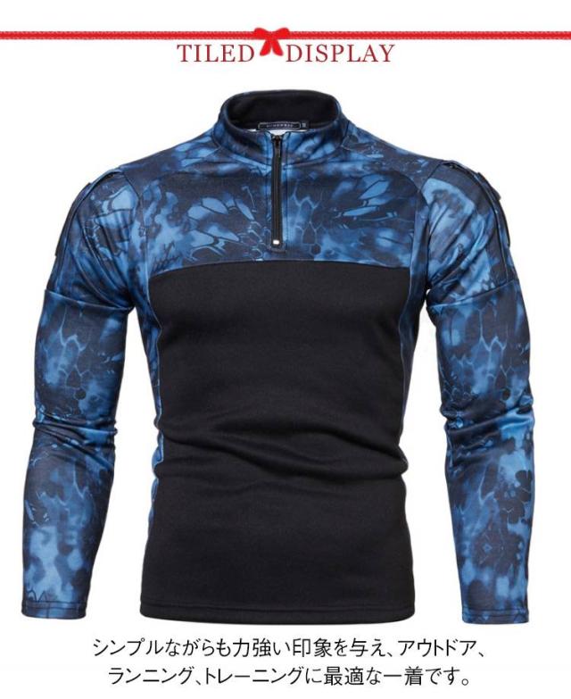 tシャツ トレーニングウエア メンズ 迷彩 スウェット スタンドカラー アウトドア アウトドア 長袖スウェット スポーツ カジュアル カモフラージュ 柄