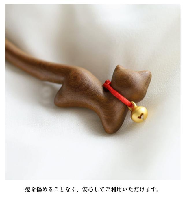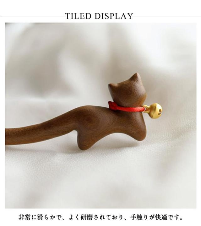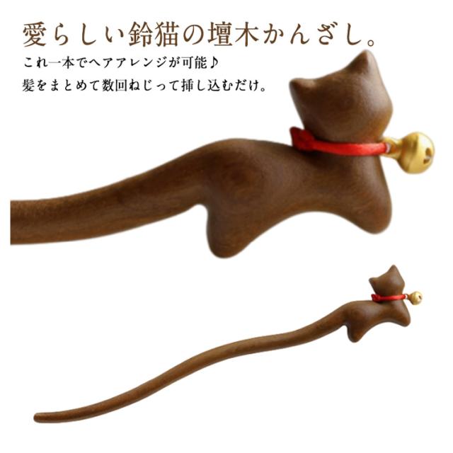 木 猫 着物 ねこ かんざし 留袖用 髪飾り 壇木 一本差し かんざし 簪 鈴猫 着物 可愛い 成人式 普段使い ヘアスティック まとめ髪 壇木 振袖 結婚式 浴衣 送料無料 天然木 カンザシ 夏祭り