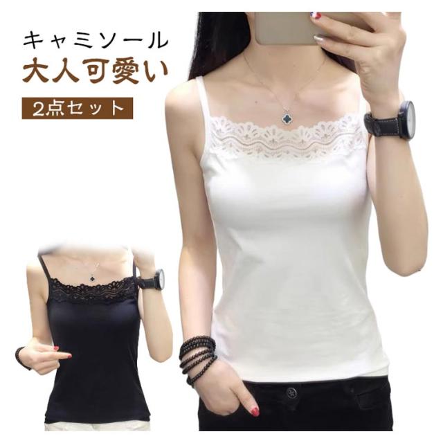 セット キャミソール 胸元レース レース 下着 蒸れない レディース 2点セット 秋 レース きれいめ 通気性 インナー 春 レースキャミソール スクエアネック キャミ 夏 大人可愛い 肌着 レディースインナー おしゃれ フェミニン 母の日 プレゼント 黒 白