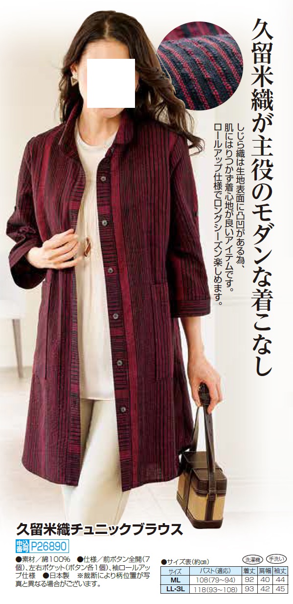 日本製 久留米織チュニックブラウス レッド 赤系 ロング丈 五分袖 ブラウス レディース 婦人服 ミセス シニア 女性 ストライプ 和風 5分袖 コットン 久留米織り しじら織り シニアファッション 40代 50代 60代 70代 80代 90代 母の日 お母さん 春物 夏物 春夏 nss p26890