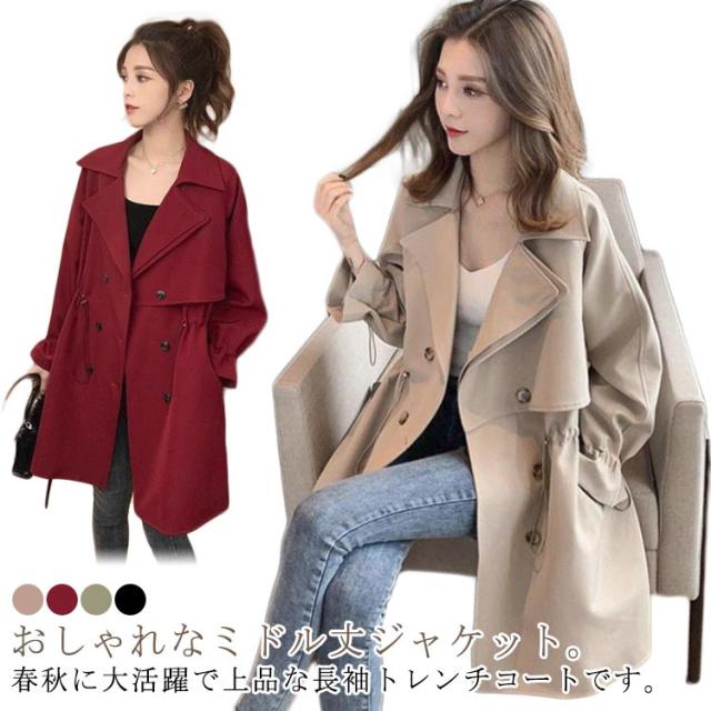 レディース コート 春 スプリングコート 春コート ミドル丈 ライトアウター 春服 ジャケット 無地 秋 OL 上品 きれいめ トレンチコート ゆったり 大きいサイズ 体型カバー アウター 通勤 長袖 トレンチ 結婚式 ビジネス 卒業式 春 トレンチコート 秋服 韓国風
