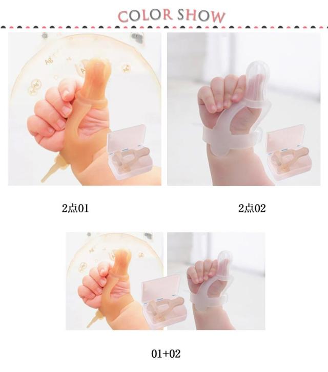 | 【2点セット】【収納ケース付き】 子供の安心の食品医療シリコンで作りました。 指しゃぶりの癖が治る成功率高い! ほとんどの場合、2週間以内に止まります。 治らない指しゃぶりを安全にやめさせる方法はコレ! | |