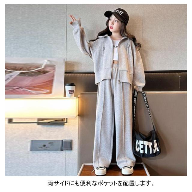 女の子 長袖 セットアップ 上下2点セット キッズ キッズ スウェット パーカー スポーツパンツ 子供服 ジャージ 春秋 シンプル ポケット カジュアル 韓国 普段着 練習着