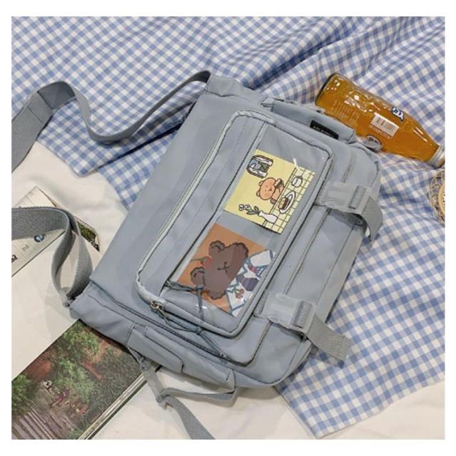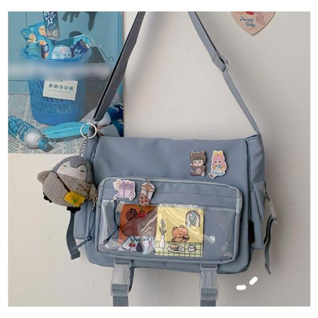 | シンプルなデザインと使い勝手の良さによって、男女兼用、流行りに学生とか、誰でも適用します。 バッグの前面の透明ポケットで見せたいアイテムで自分の好みにアレンジできるトートバッグです。 好きな芸能人やアニメキャラの写真、缶バッジ、ストラップ、ぬいぐるみ、萌グッズなど入れて一目瞭然です。 | |