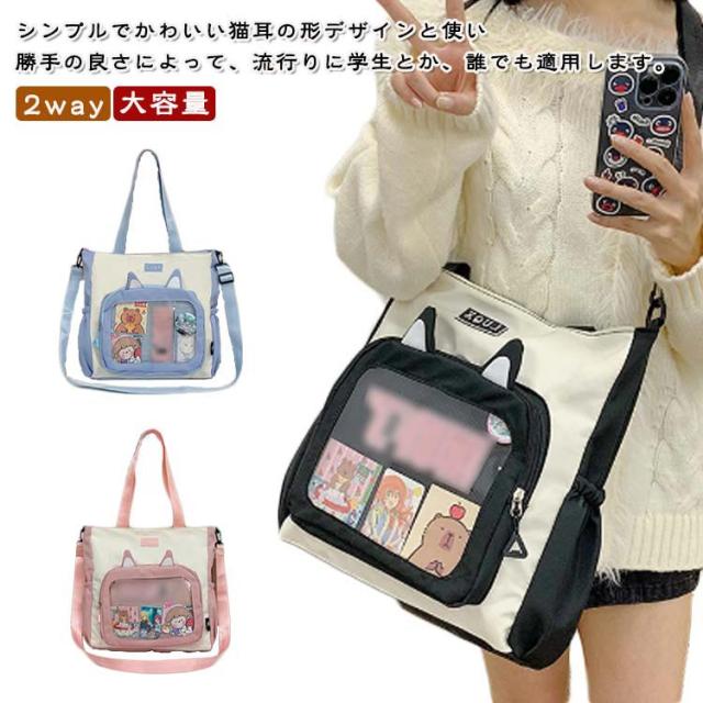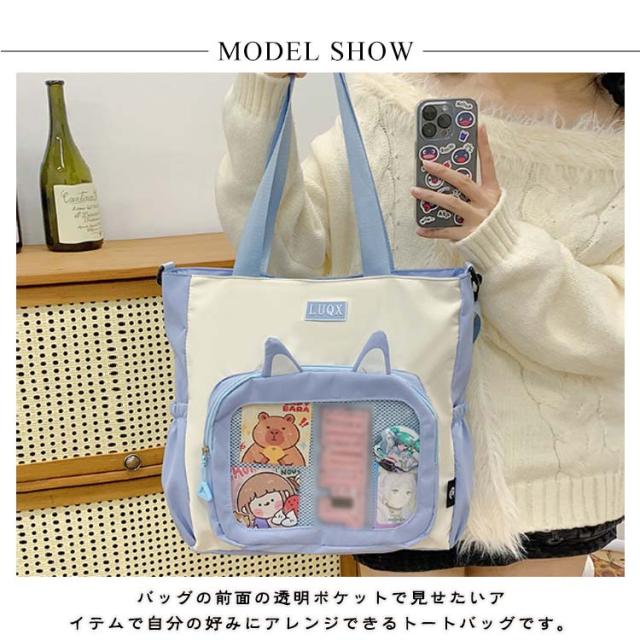 ショルダー 痛バッグ 透明 ショルダーバッグ トート バッジボード付き 見せバッグ 痛リュック サイドポケット 痛バッグ 透明 トートバッグ クリアバッグ 猫耳 A4 ビニール スクール バッグ トートバッグ 痛バ トート 痛バ 斜めがけ 大容量通学 通勤