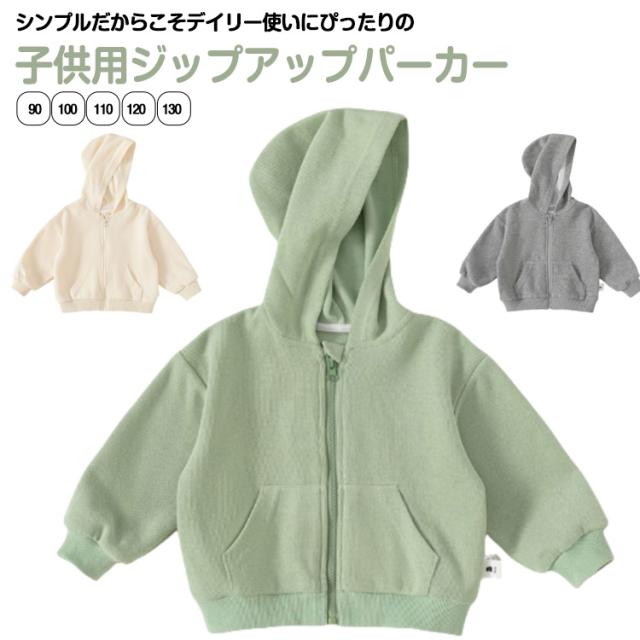 ジップパーカー パーカー 90-140cm 女の子 シンプル キッズ 長袖 パーカー ポケット付き 無地 カジュアル 着まわし ジュニア フーディー リンクコーデ 羽織り くすみカラー 無地 リブ袖 ジップアップ 春服 秋服