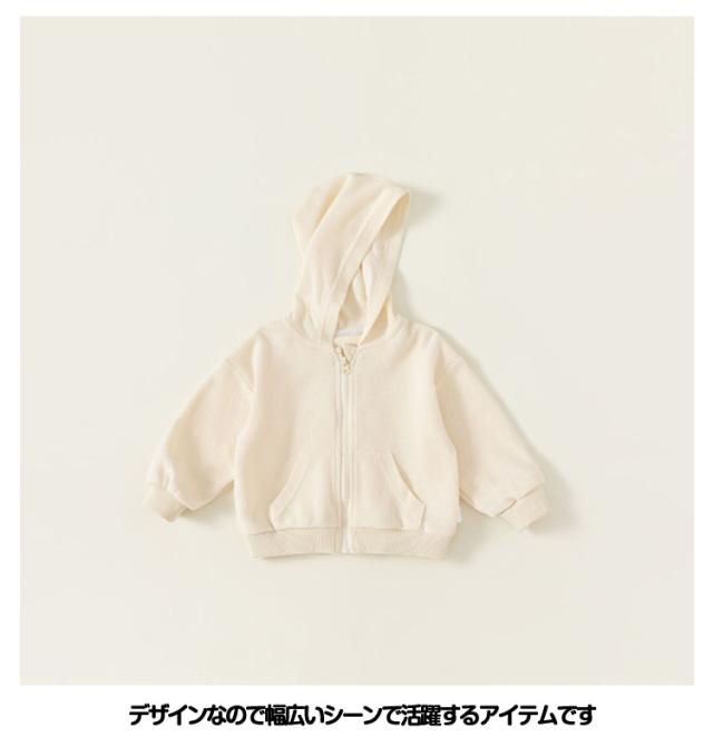 | シンプルだからこそデイリー使いにぴったりの子供用ジップアップパーカー。 季節の変わり目や冷房対策など、寒い日の重ね着にもオススメ! デザインなので幅広いシーンで活躍するアイテムです ユニセックスデザインで兄弟・姉妹でのリンクコーデも | |
