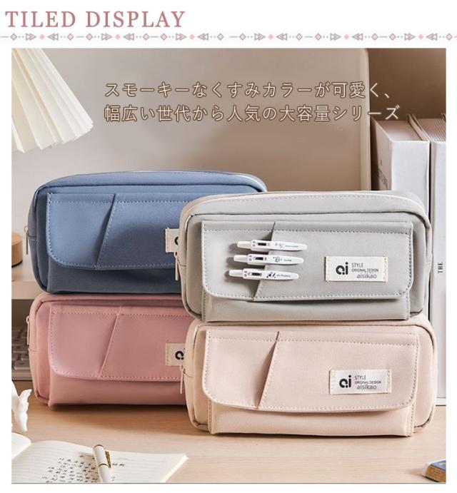 | 大容量 ペンケース スモーキーなくすみカラーが可愛く、幅広い世代から人気の大容量シリーズ | |