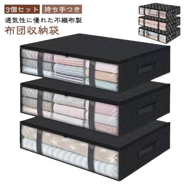ふとん 収納ボックス 収納袋 布団収納ケース おしゃれ ファスナーつき 布団 クローゼット 掛布団 敷布団収納 袋 不織布 3個セット 羽毛布団 毛布 ブランケット タオルケット 保管 寝具 積み重ね 布団収納袋 持ち運び ベッド下 押し入れ